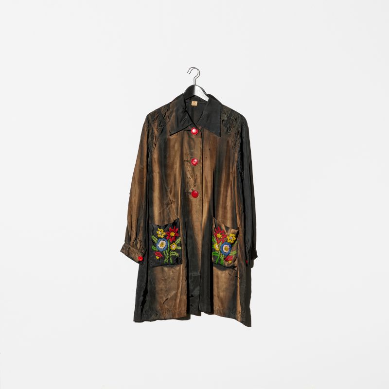 Vintage《FROCKS》Flower Embroidered Black Satin Half Coat
