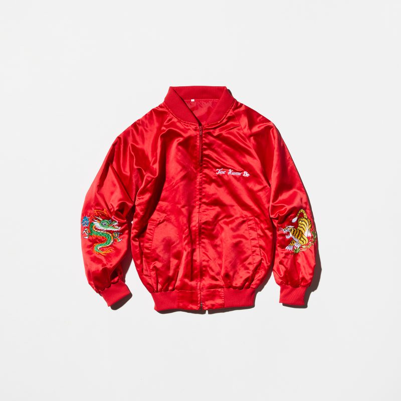 Vintage Tiger&Dragon Embroidered Red Satin Jacket